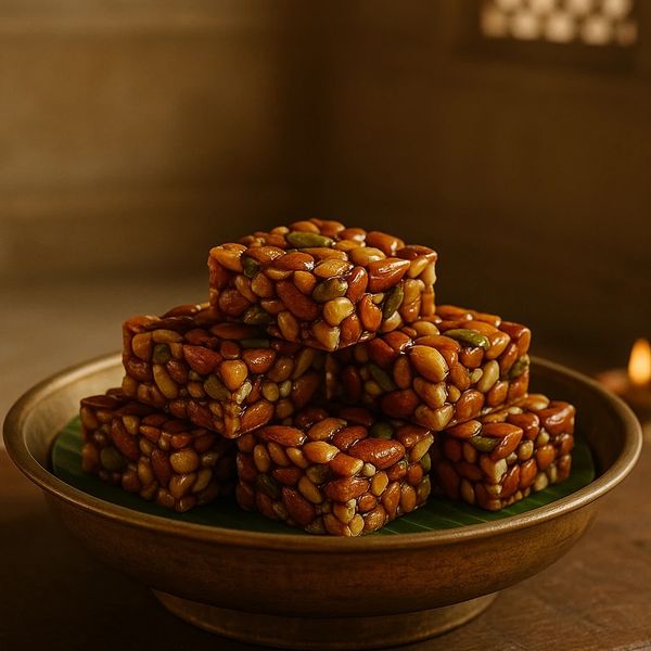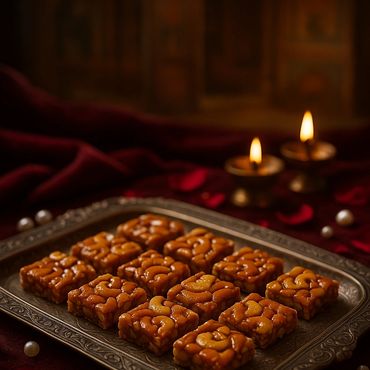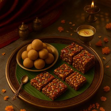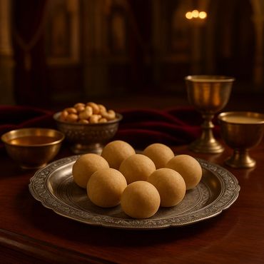 In ancient palace kitchens where veena notes lingered and jasmine perfumed the air, trays of golden sweets once adorned royal feasts. Each morsel, hand-shaped with devotion, carried both nourishment and blessing — a ritual of joy, prosperity, and festivity.